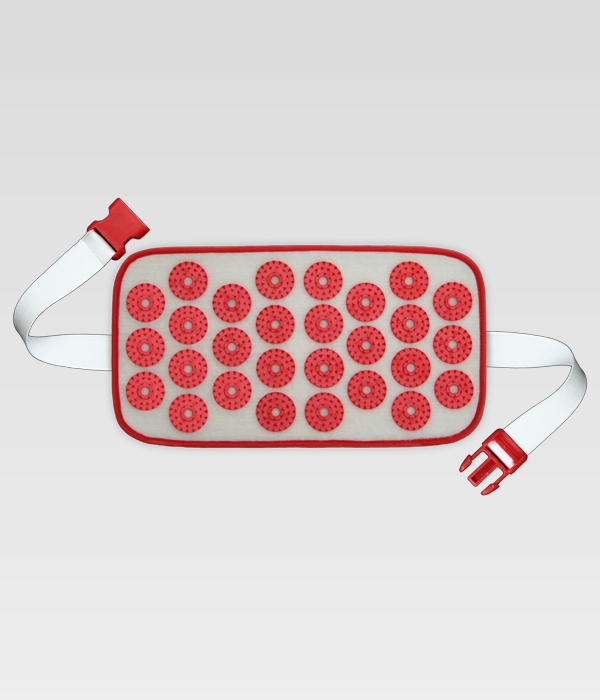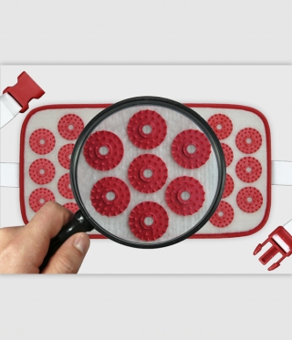 Акупрес-М Възглавничка с еластичен колан представлява мека текстилна възглавничка с размери 33/18 см, върху която са залепени пластмасови модули с шипчета.