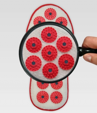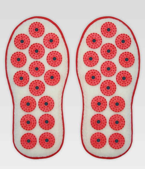 АКУПРЕС - М Стелки с магнити са предназначени за масаж на стъпалата. Те представляват меки възглавнички с формата на ходило, покрити с пластмасови модули с шипчета и вградени магнити.